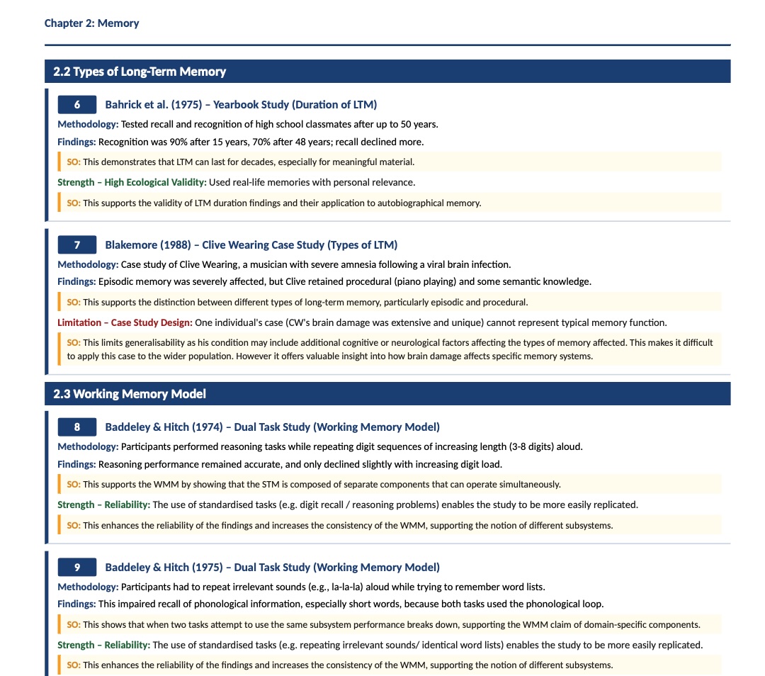 Stop losing marks because you can’t remember the perfect study. Every study you need for A-Level Psychology AO3 evaluation, formatted for exam success.