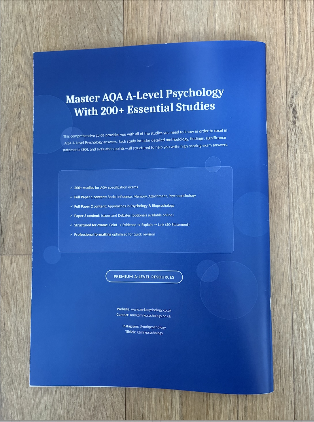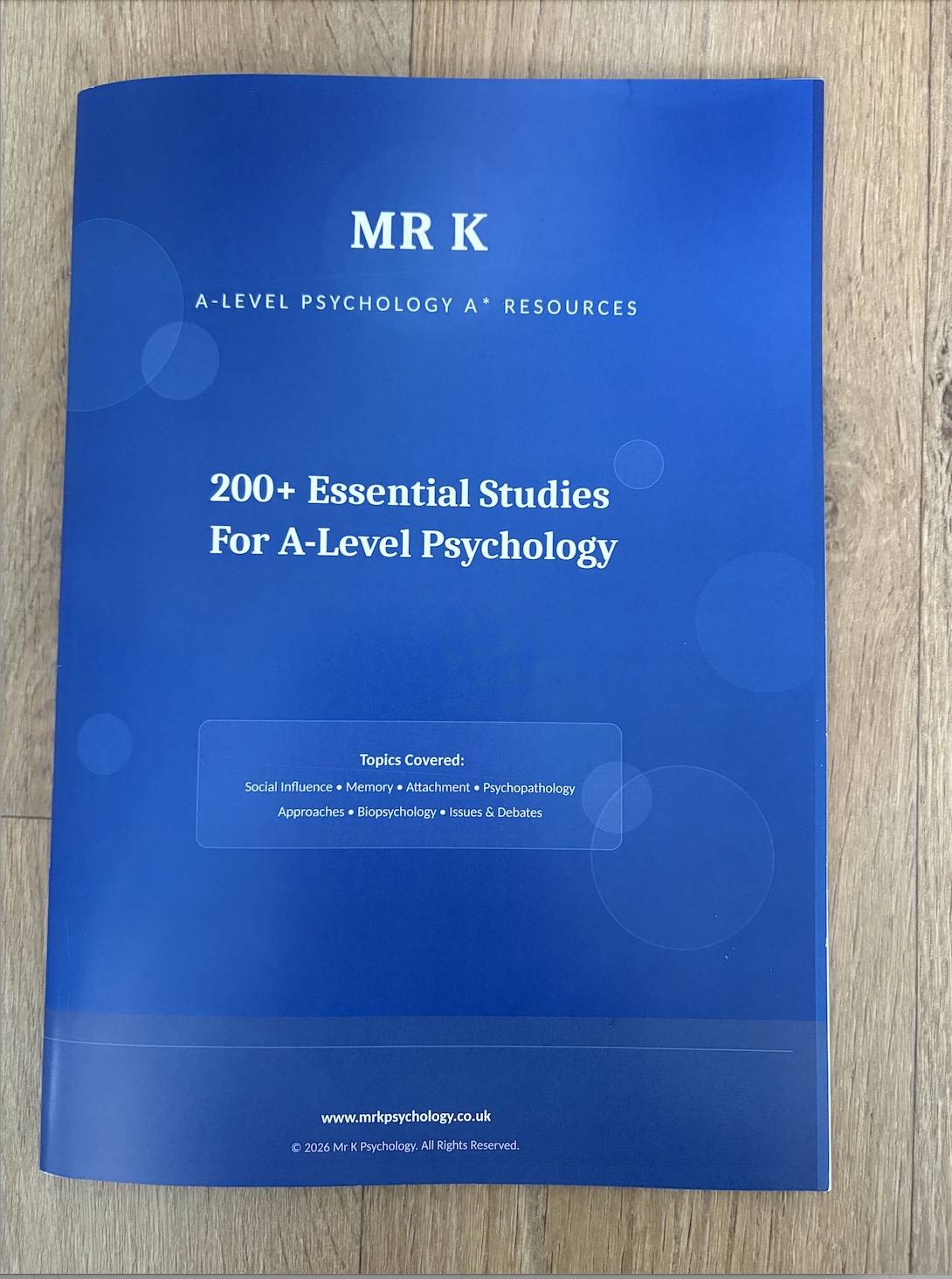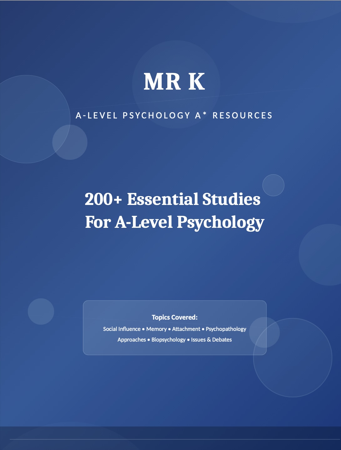 Created by Mr K — the world’s highest-scoring A-Level Psychology student — this is the study reference guide he wished existed when he was revising. Now beautifully formatted and comprehensive, it contains over 200 carefully selected studies covering all Paper 1, all Paper 2 (excluding research methods), and Issues & Debates.